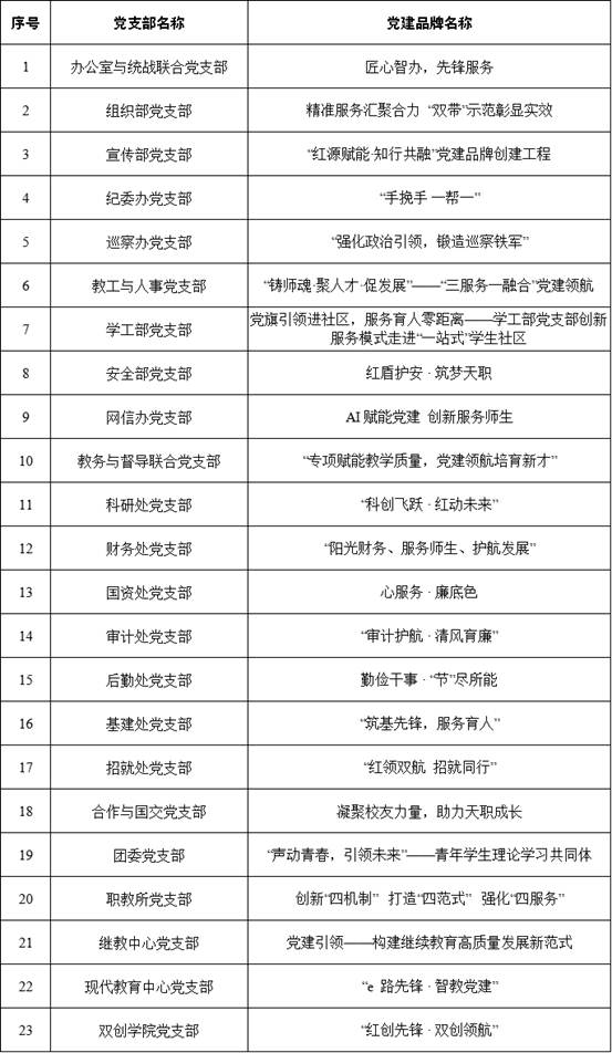 机关党委坚持“开门创品牌”,接受全校师生员工监督,现将机关各党支部党建工作品牌名称公开如下: